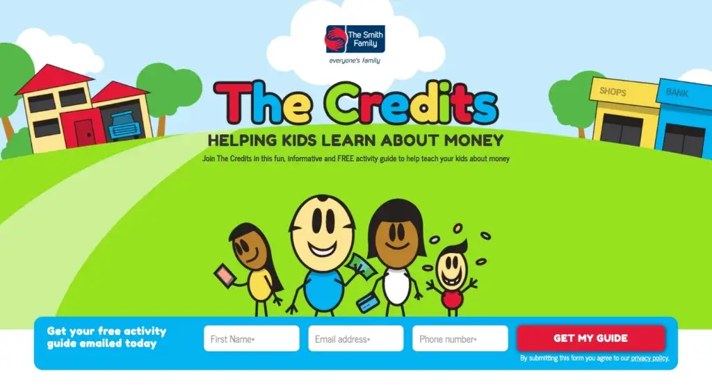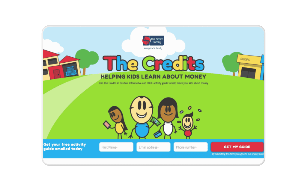Our design team laboured over this 11 page activity pack with illustrations, tips and activities that provide real value for families. The guide is designed for children aged 3 to 10 years but the information useful for children of all ages. We are pleased with the success of The Smith Family’s campaign for financial literacy – “The Credits”. TSF reported that within the first 4 days of launching the Facebook campaign using our creative work and page optimisation, they received over 1000 downloads.